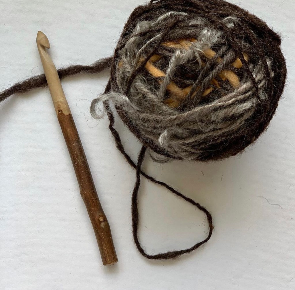 Expanding the narrative of fiber art using a crochet hook and hand spun yarn.